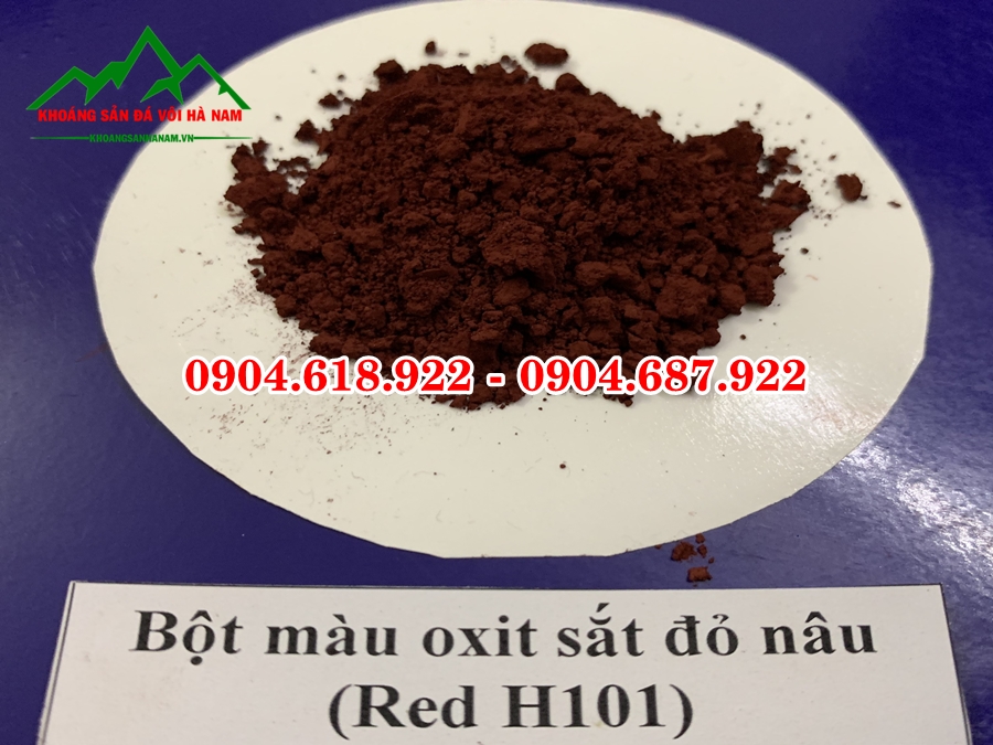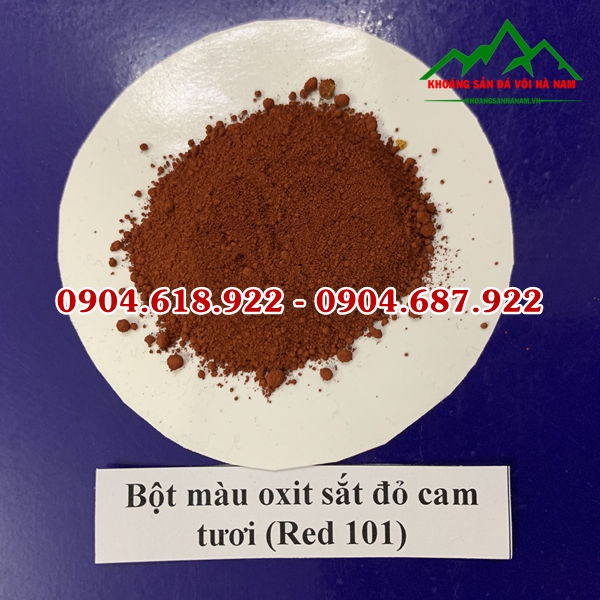 Bột màu oxit sắt đỏ là loại chất tồn tại dưới dạng bột, có hàm lượng sắt cao chiếm khoảng 95-98%; công thức hoá học là oxit sắt III (Fe2O3). Bột màu đỏ bao gồm 2 loại: Màu đỏ H101 (đỏ nâu) và màu đỏ Y101 (đỏ tươi). Bột màu đỏ có gốc là màu vô cơ, được nhập khẩu trực tiếp từ Trung Quốc. Bao bì được đóng theo quy chuẩn nhà sản xuất 25kg/bao.