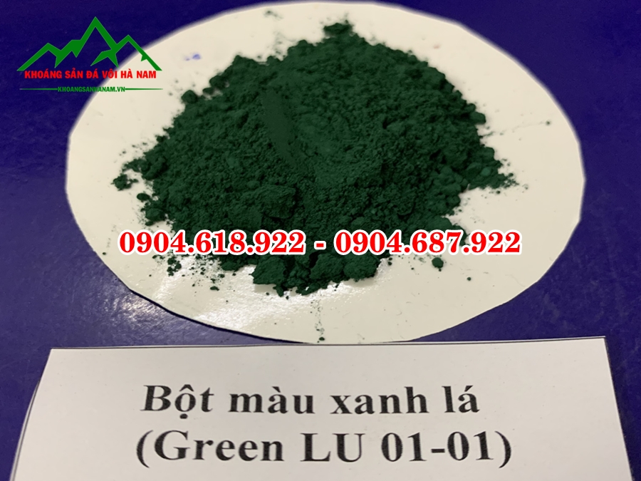 Bột màu xanh là chế phẩm hoá học được nén thành bột từ các chất tạo màu xanh. Có thành phần vô cơ hoặc từ các nguyên tố hoá học để tạo nên màu xanh lá (LU01-01) và màu xanh dương. húng có tính phân tán cao và không hòa tan trong môi trường phân tán, được sử dụng bằng cách trộn với các dung dịch như sơn, nhựa … để tạo màu cho sản phẩm.