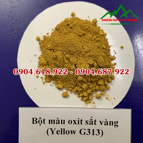 Bột màu vàng là loại màu tồn tại dưới dạng bột, có hàm lượng oxit sắt cao trên 96%; là oxit III hidrat hoá (Fe2O3.H2O). Bột màu vàng có gốc là màu vô cơ, được nhập khẩu trực tiếp từ Trung Quốc. Bao bì được đóng theo quy chuẩn nhà sản xuất 25kg/bao.