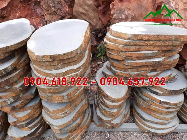 Đá bước dạo sa thạch là dòng đá tự nhiên có màu xám đen, bề mặt thô nhám tự nhiên, chống trơn trượt, chống thấm nước. Loại đá này có hình dạng thớt (đường kính 35-55cm) hoặc hình chữ nhật (KT 30x60cm). Tuỳ vào hình dáng và diện tích sân vườn mà bạn có thể lựa chọn được loại đá phù hợp với công trình trang trí.