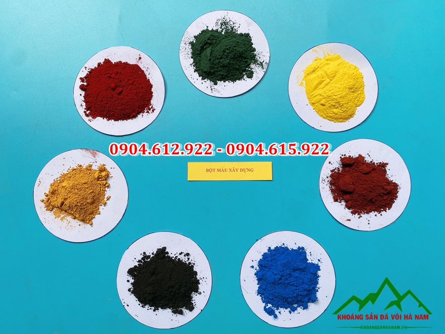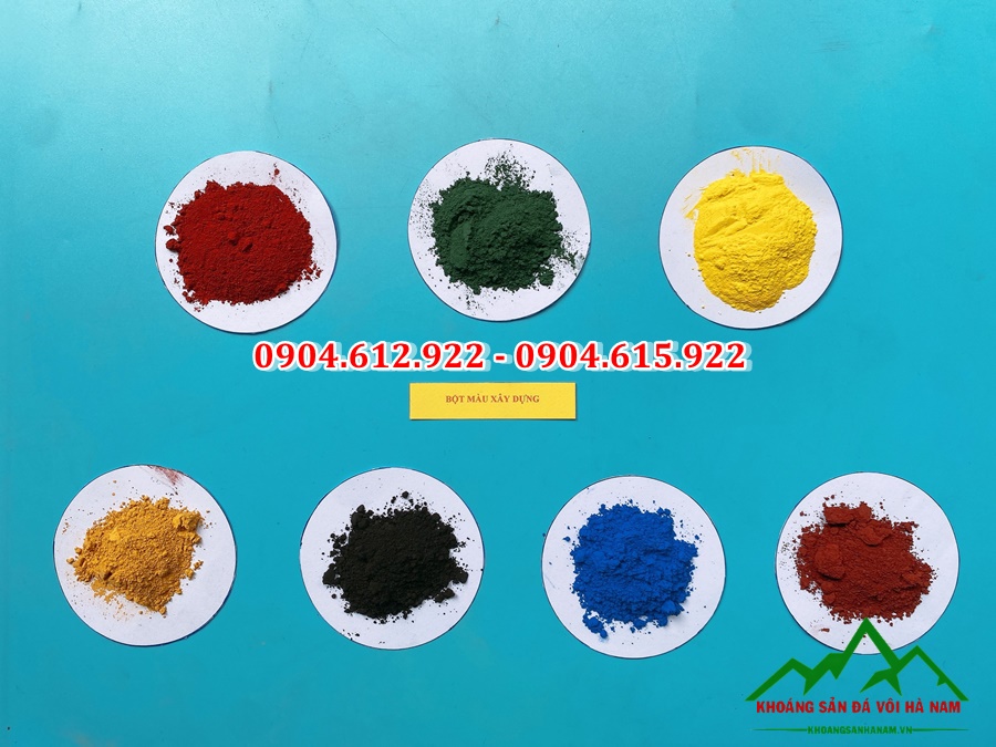 Công ty TNHH Khoáng Sản Đá Vôi Hà Nam chuyên cung cấp các loại bột màu Oxit sắt đỏ tươi, Oxit sắt đỏ nâu, Oxit sắt vàng, Oxit sắt đen, Bột màu cam, Bột màu xanh lá cây, Bột màu xanh dương và nhiều sản phẩm màu đa dạng khác. Bột màu chủ yếu được dung trong ngành công nghiệp xây dựng như: sản xuất Gạch Terrazzo, gạch Block, gạch Bông, nhựa, gỗ, sơn ngói, sơn chống gỉ và nhiều những ứng dụng khác…