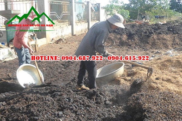 + Rắc vôi bột lên trên hỗn hợp. Bạn có thể sủ dụng theo tỷ lệ 0,25 – 0,5kg vôi bột trên mỗi m2 phân hữu cơ.