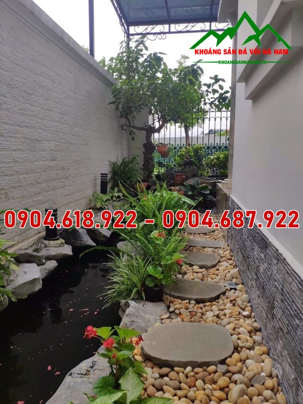 Sử dụng đá tự nhiên là đá lát bước dạo kết hợp với rải sỏi trang trí xung quanh sẽ giúp nổi bật cảnh quan ngôi nhà của bạn. Đặc biệt, sử dụng loại đá này sẽ giúp cho việc di chuyển được thuận tiện, dễ dàng và an toàn hơn.