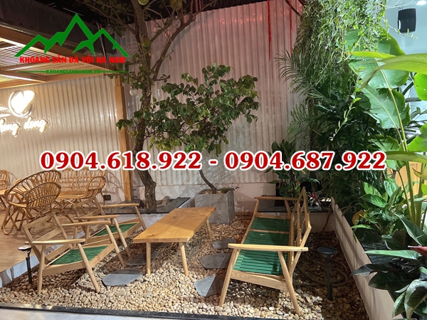 Các mẫu trang trí quán cafe, nhà hàng từ sỏi cuội bán