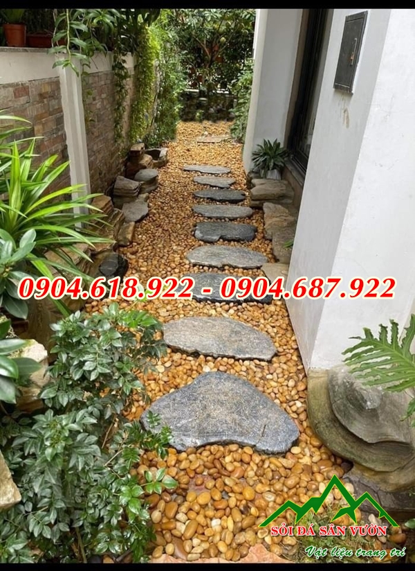 Sự kết hợp của sỏi vàng tự nhiên trong trang trí sân vườn đang ngày càng được nhiều người ưu ái lựa chọn.