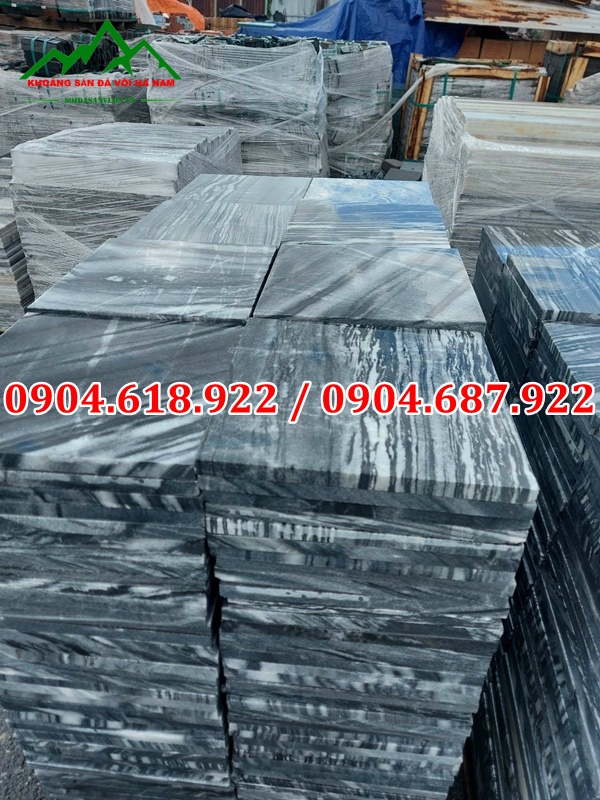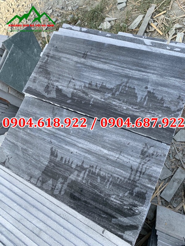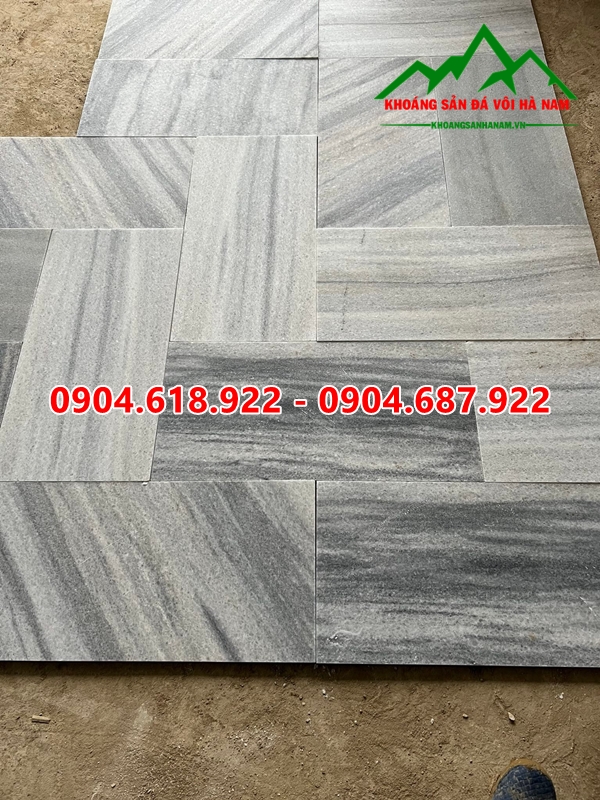 Đá sọc dưa mài có kích thước 30x30cm, 40x40cm, 30x60cm; độ dày viên đá khoảng 1,8-2cm nên đảm bảo được độ bền chắc khi sử dụng. Gam màu chính của loại đá này là màu xám đen và có nhiều vân sọc màu trắng.