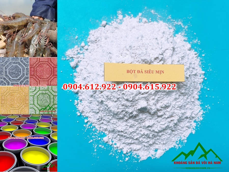 Công Ty TNHH Khoáng Sản Đá Vôi Hà Nam. Chuyên khai thác, sản xuất bột đá CaCO3 số lượng lớn. Chất lượng cao độ mịn từ 65 – 250 Micron tùy theo mục đích sử dụng của khách hàng. Công Ty chúng tôi tự hào là nhà cung cấp bột đá lớn nhất Hà Nam. Chuyên cung cấp bột đá cho các ngành thức ăn chăn nuôi, thức ăn thủy sản, xây dựng, sơn, bột bả…