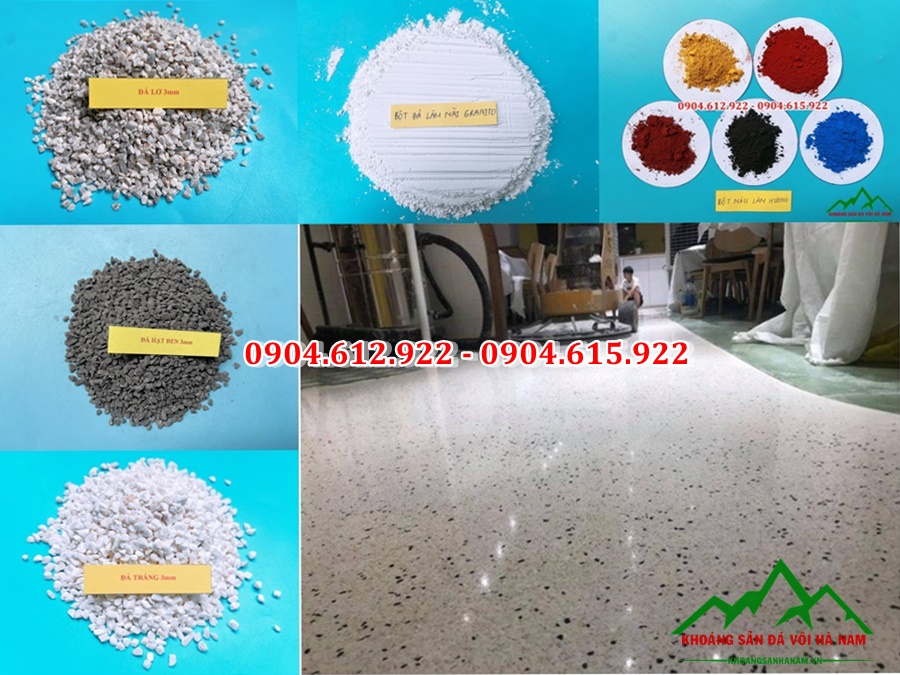 Công Ty TNHH Khoáng Sản Đá Vôi Hà Nam. Chuyên khai thác và sản xuất bột đá, đá hạt làm nguyên liệu cho sản xuất gạch terrazzo, mài granito… số lượng lớn, giá rẻ chất lượng uy tín nhất thị trường