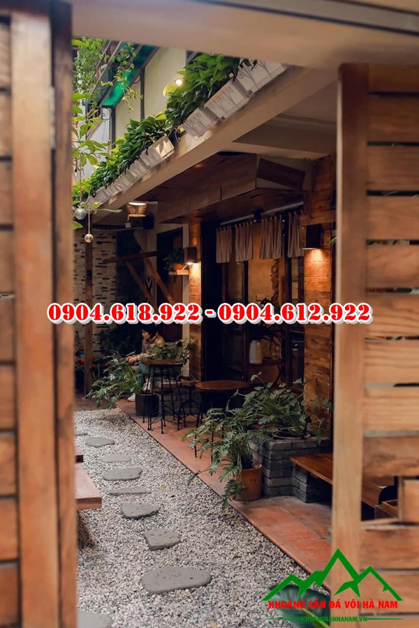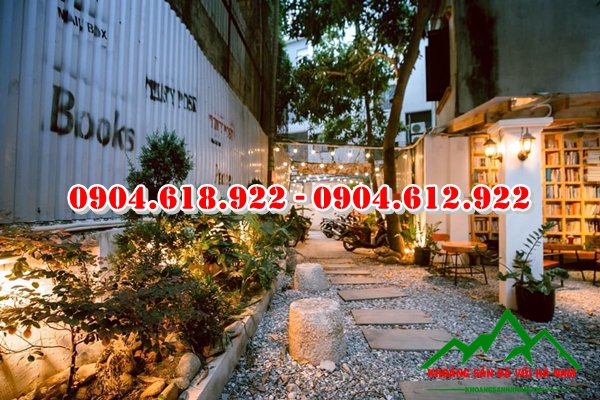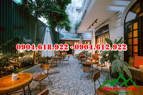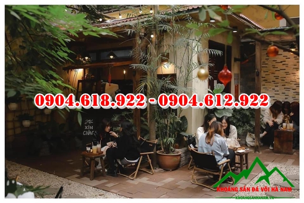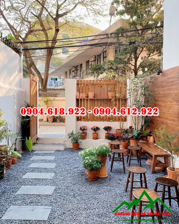 - Trang trí sân vườn quán cafe bằng sỏi đá sinh động, khách hàng cũng rất thích thú khi bước lên bề mặt đá.