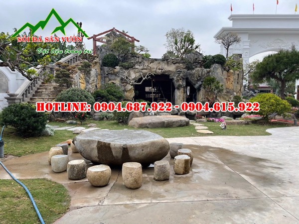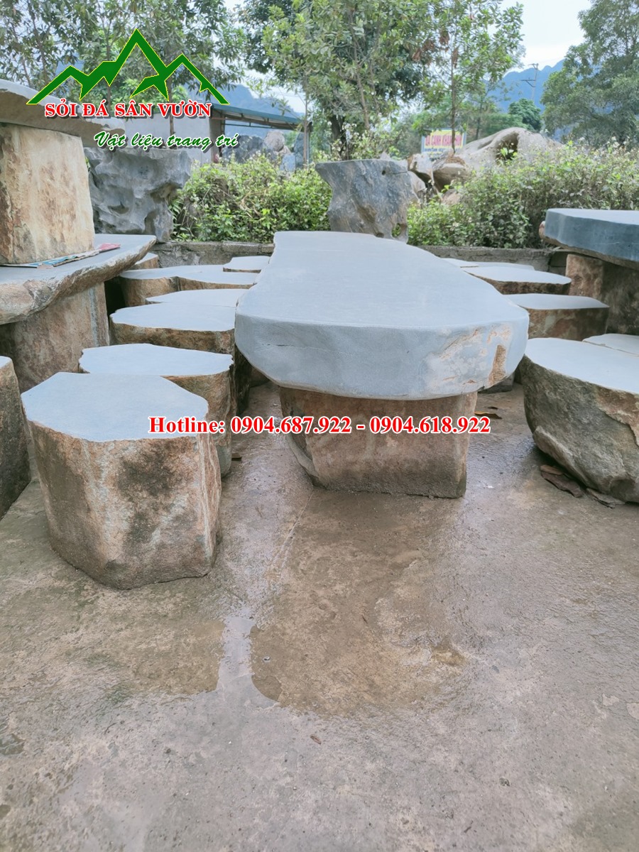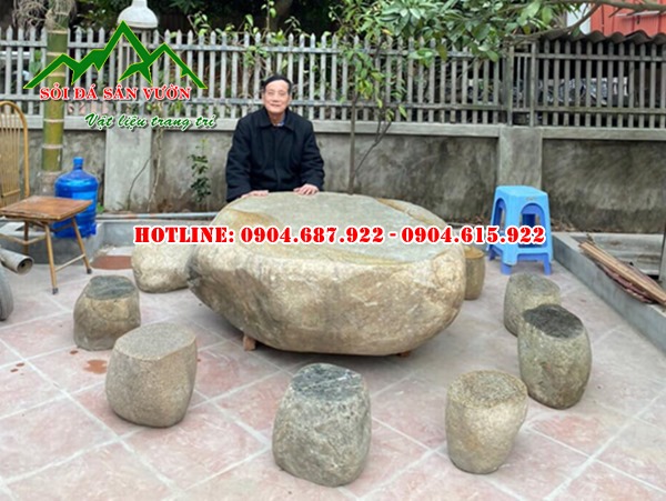 Bàn ghế đá cuội tự nhiên là sản phẩm vật liệu trang trí cảnh quan, tiểu cảnh sân vườn. Ngày nay chúng ta dễ dàng bắt gặp chúng được sử dụng để trang trí các loại khuân viên, sân vườn, đền, chùa, công viên, nơi công cộng, biệt thự, khách sạn, villas…